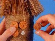 3.Надень веник на банку, смазав клеем наружный край горлышка. Распрями траву так, чтобы не было дырок. После высыхания клея обрежь лишнюю траву сверху и снизу веника.